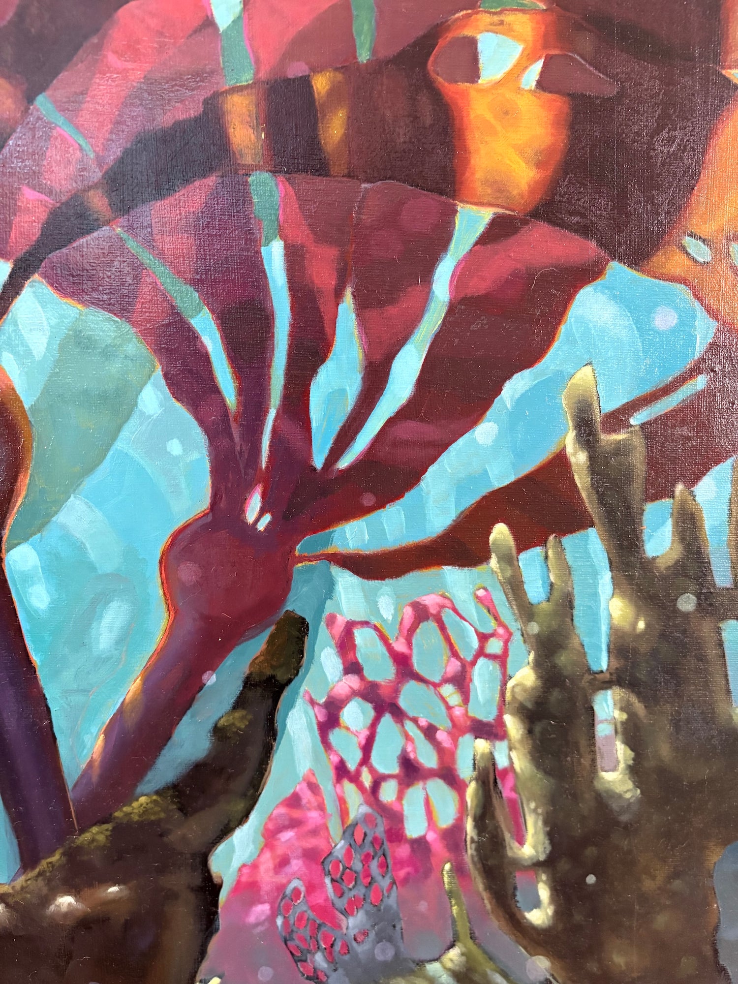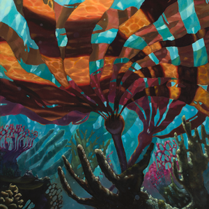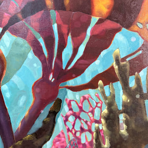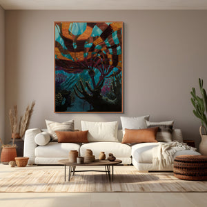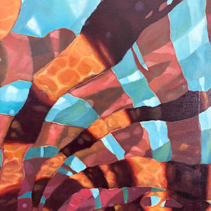 This work explores the way light breaks and moves beneath the surface - warm patterns drifting across cooler shadows, creating a quiet sense of motion and contrast. Inspired by underwater landscapes along the British Columbia coast, the piece brings depth, movement, and a subtle energy into a space.